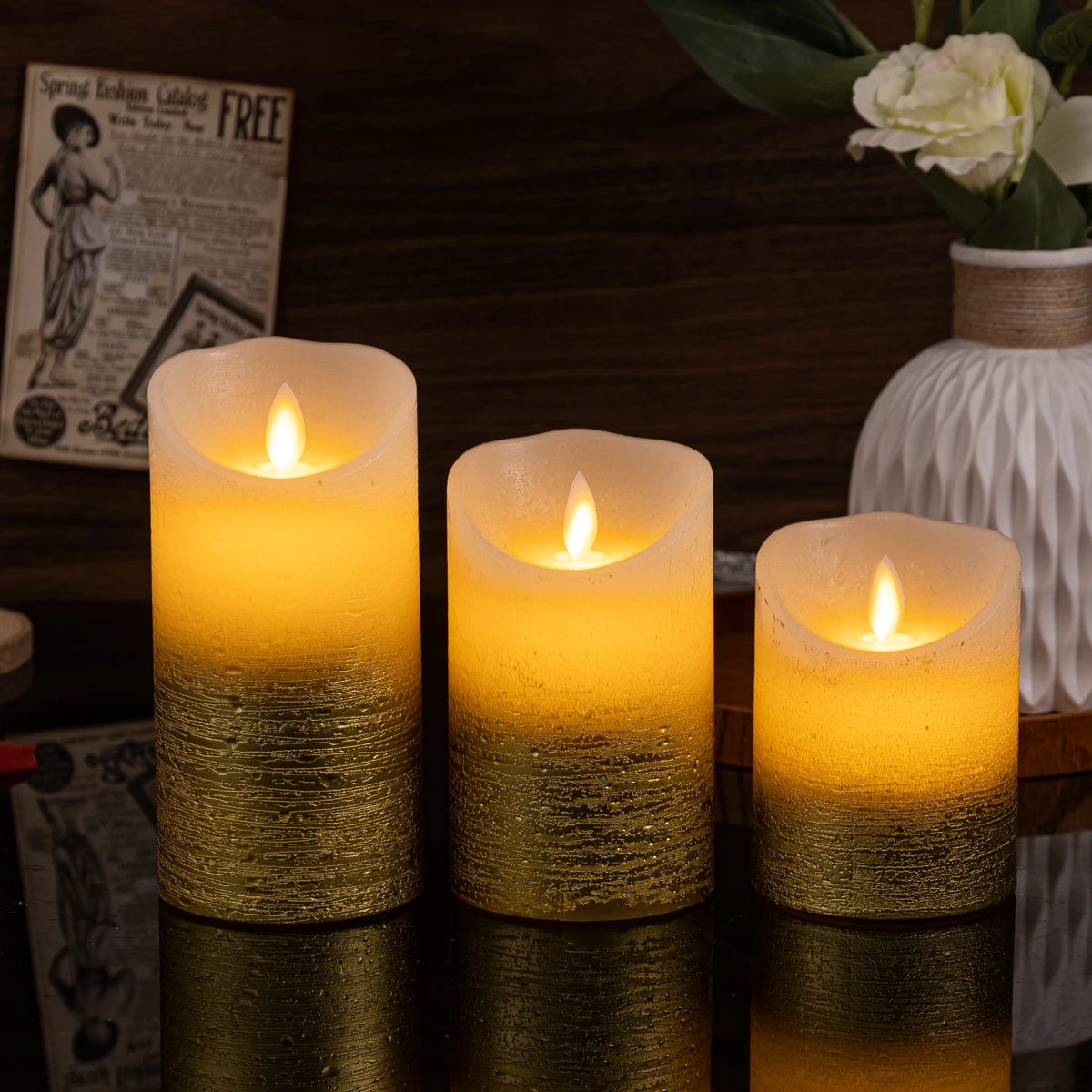Bougies LED Électriques sans Flamme avec Surface Rugueuse Dorée. Décoration en Cire Réelle pour Mariage. Bougies LED à Piles