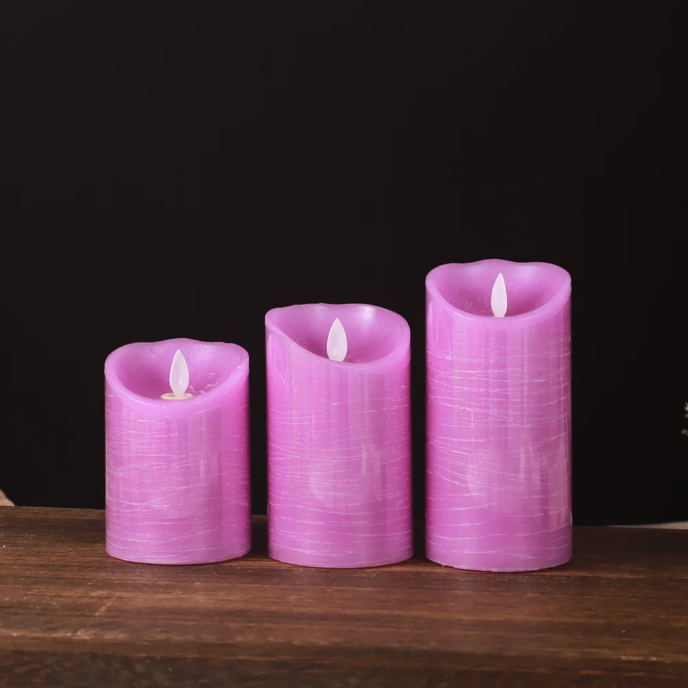 Bougie LED Réutilisable Décorative en Cire Réelle avec Flamme Réelle 4 Couleurs (Rose, Bleu, Jaune, Violet) Pile Pilier Balançoire d'Ondes d'Eau