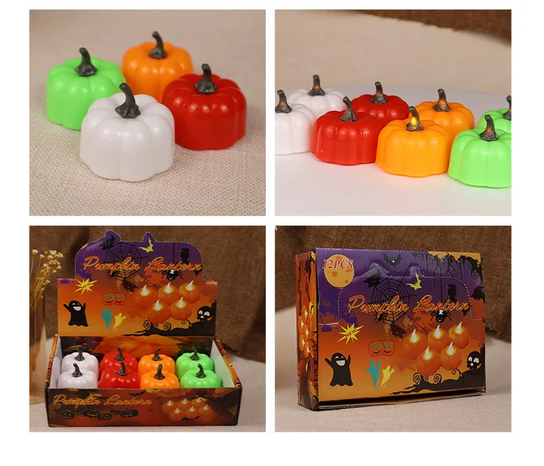Bán sỉ Bí ngô Halloween Mini Màu sắc Rực rỡ Nhựa Đèn trà LED Không ngọn lửa Nến Trà Nhỏ cho tiệc trang trí nhà cửa